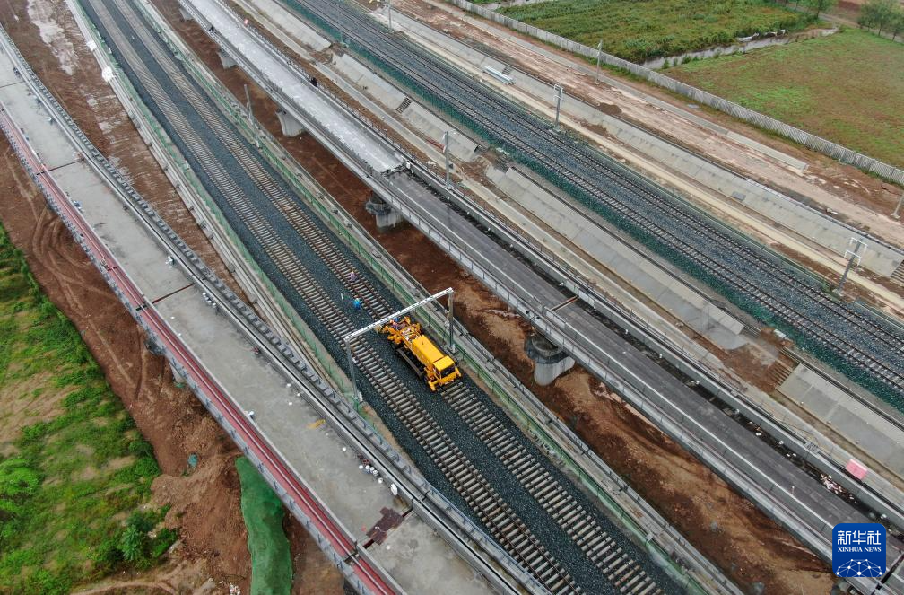 10月11日,中铁工程车辆。一局在西康高铁西安东站至牛背梁站之间铺设无缝金属(无人机照片)。 10月11日,在西康高铁西安东站至车站车站施工现场,施工人员在无砟轨道板上顺利铺设第一对500米长不稳定铁路,标志着西康高铁西城铁路陕西公司、中铁一局全线正式铺轨。西康高速金属,穿越秦岭山脉,全长171公里,设计时速350公里。建成通车后,将大大缩短通车时间和距离。陕南城市群与秦巴山脉之间的空间。释放关中至陕南之间的交通需求,促进当地经济发展,难度很大。新华社记者 李艺博 摄